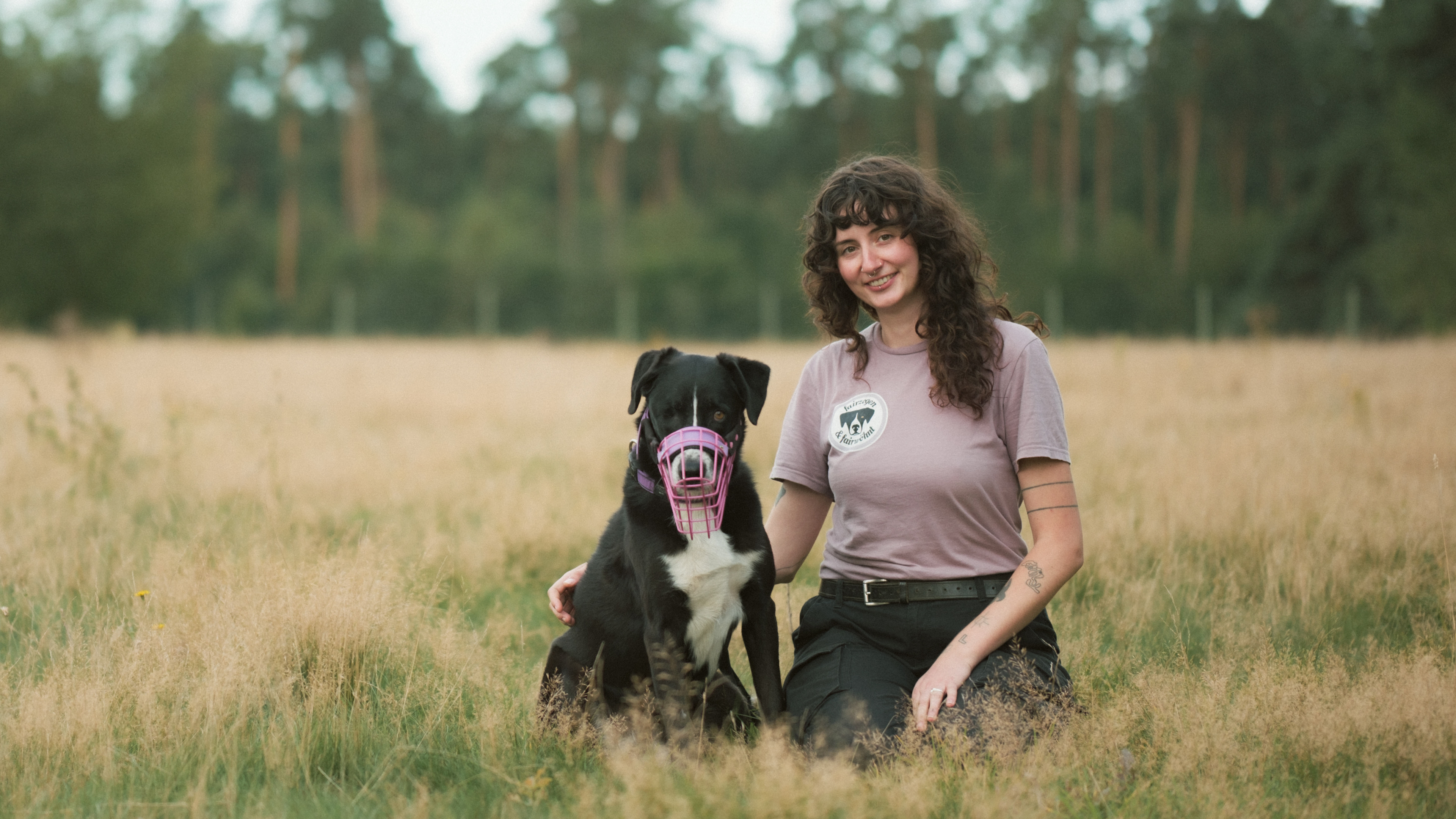 We aimed for chill and friendly pictures with an analog character. The minimal color palette of greens and rosé - even the muzzle - elevates the vibe. The branded clothing is specially made and fits well. A very cohesive appearance. See the full reportage here.